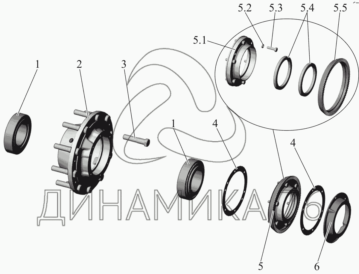 Перечень комплектующих от Ступица 152-3104006 на МАЗ-152 (2011)