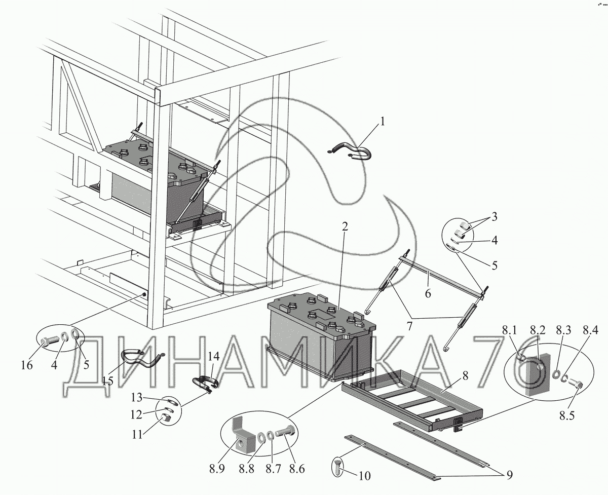 Перечень комплектующих от Установка АКБ на МАЗ-152 (2011)