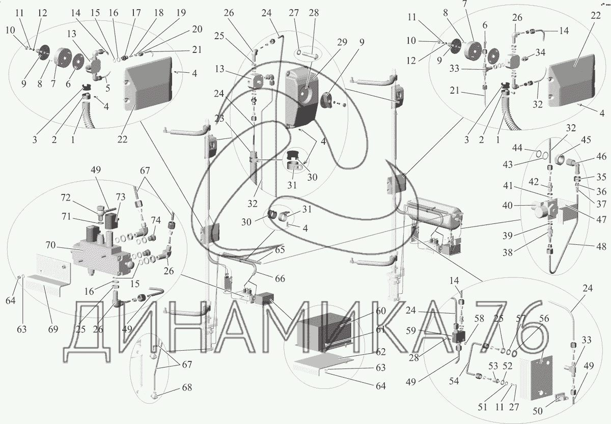 Перечень комплектующих от Установка пневмоаппаратуры 152-6100011-10 на МАЗ-152 (2011)