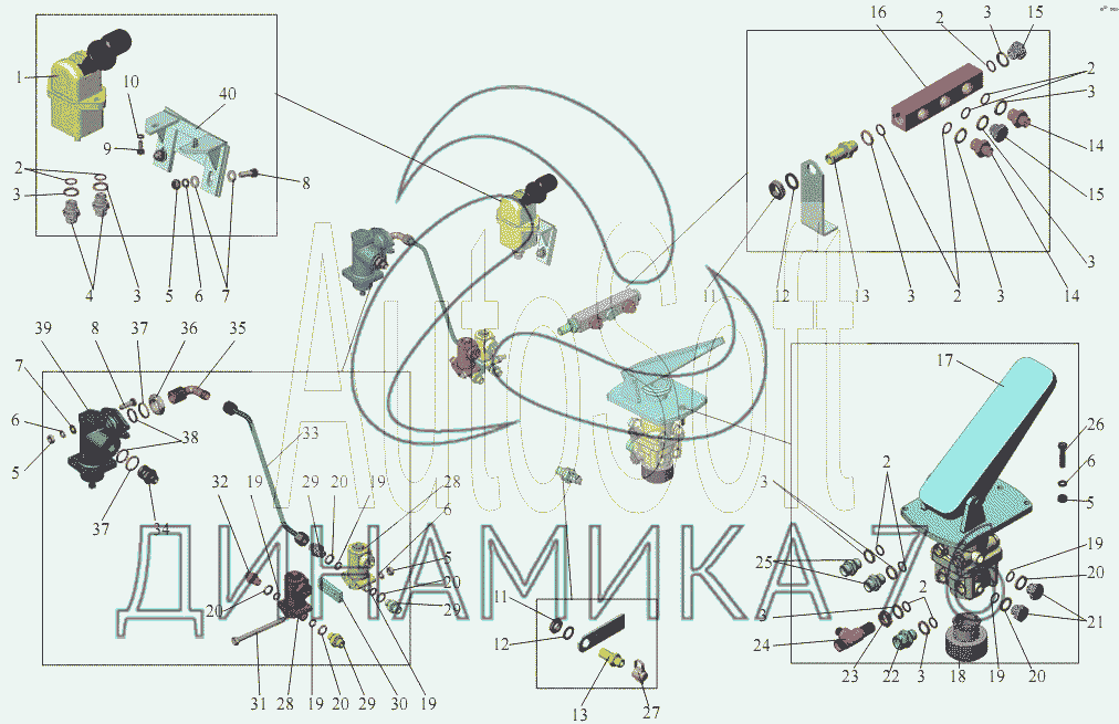 Перечень комплектующих от Аппараты управления тормозами на МАЗ-203