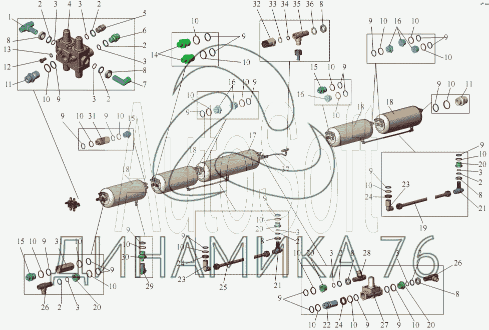 Перечень комплектующих от Блок ресиверов левый и защитные устройства на МАЗ-203