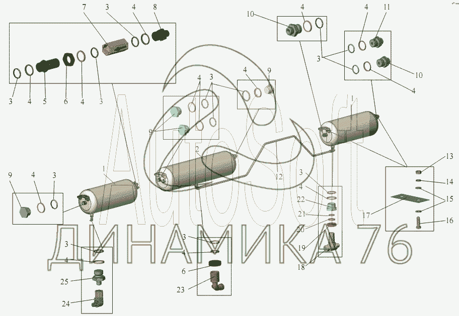 Перечень комплектующих от Блок ресиверов правый на МАЗ-203
