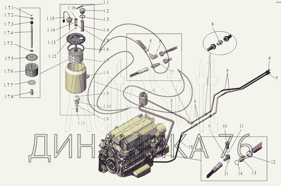 Перечень комплектующих от Установка насоса и трубопроводов рулевого управления на МАЗ-203