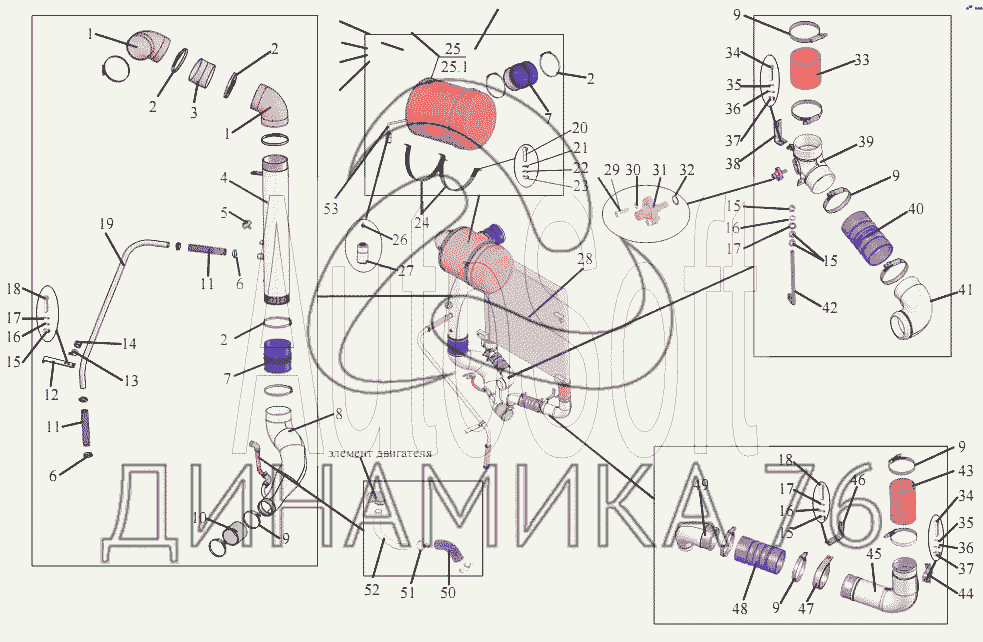 Схемы запчастей предназначены для справочных целей! Мы продаем не все запчасти от Установка воздухоочистителя и охладителя наддува на МАЗ-203, представленные в этом списке.