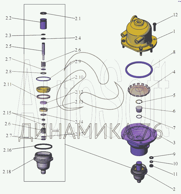 Перечень комплектующих от Влагомаслоотделитель на МАЗ-203