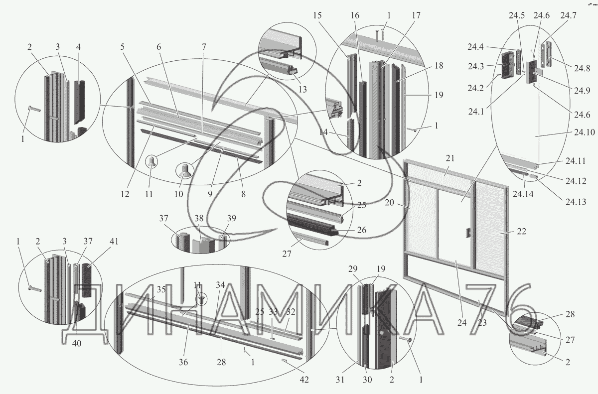Перечень комплектующих от Окно водителя 206065-5403010 на МАЗ-206/226