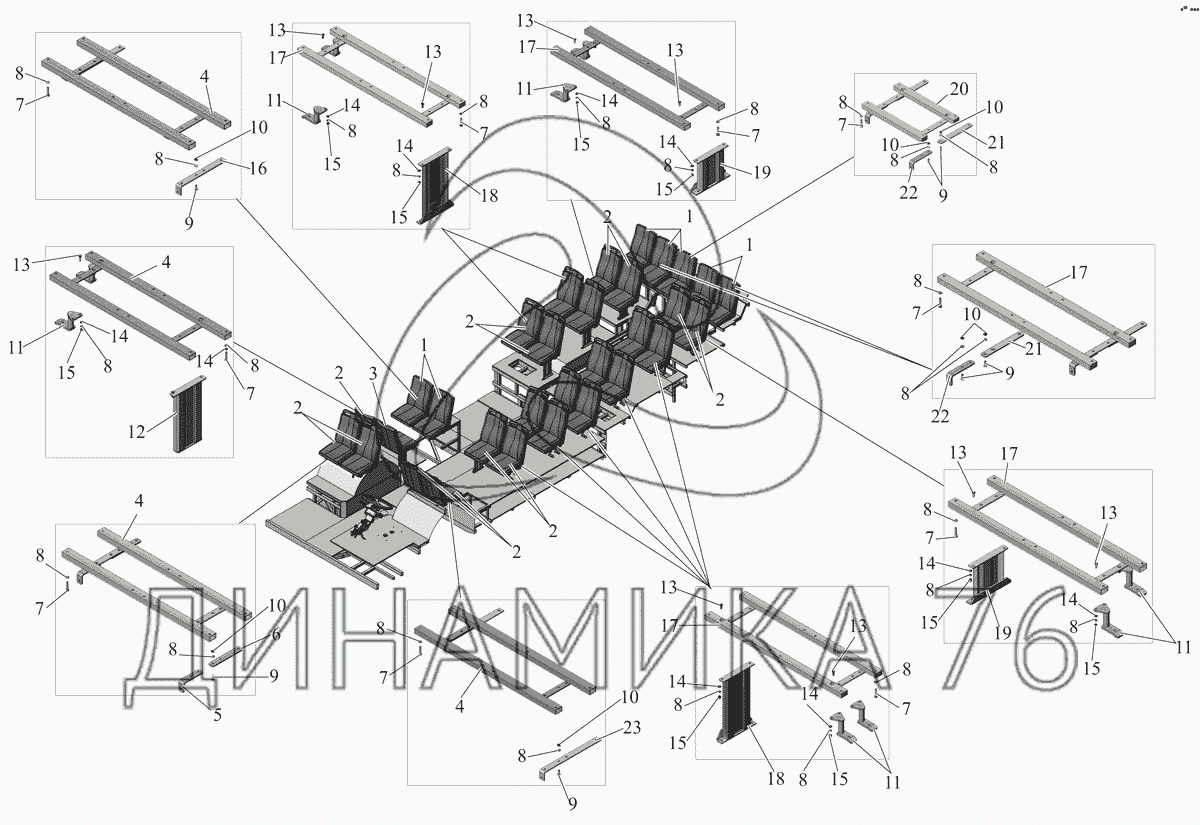 Схемы запчастей предназначены для справочных целей! Мы продаем не все запчасти от Установка сидений 226060-6830006 на МАЗ-206/226, представленные в этом списке.