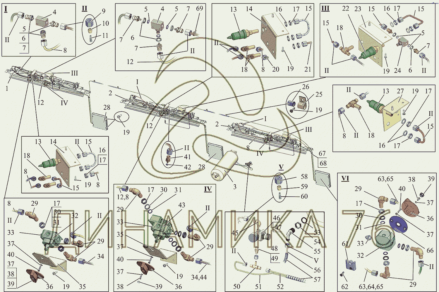 Схемы запчастей предназначены для справочных целей! Мы продаем не все запчасти от Пневмоаппаратура дверей 1- секции на МАЗ-215, представленные в этом списке.