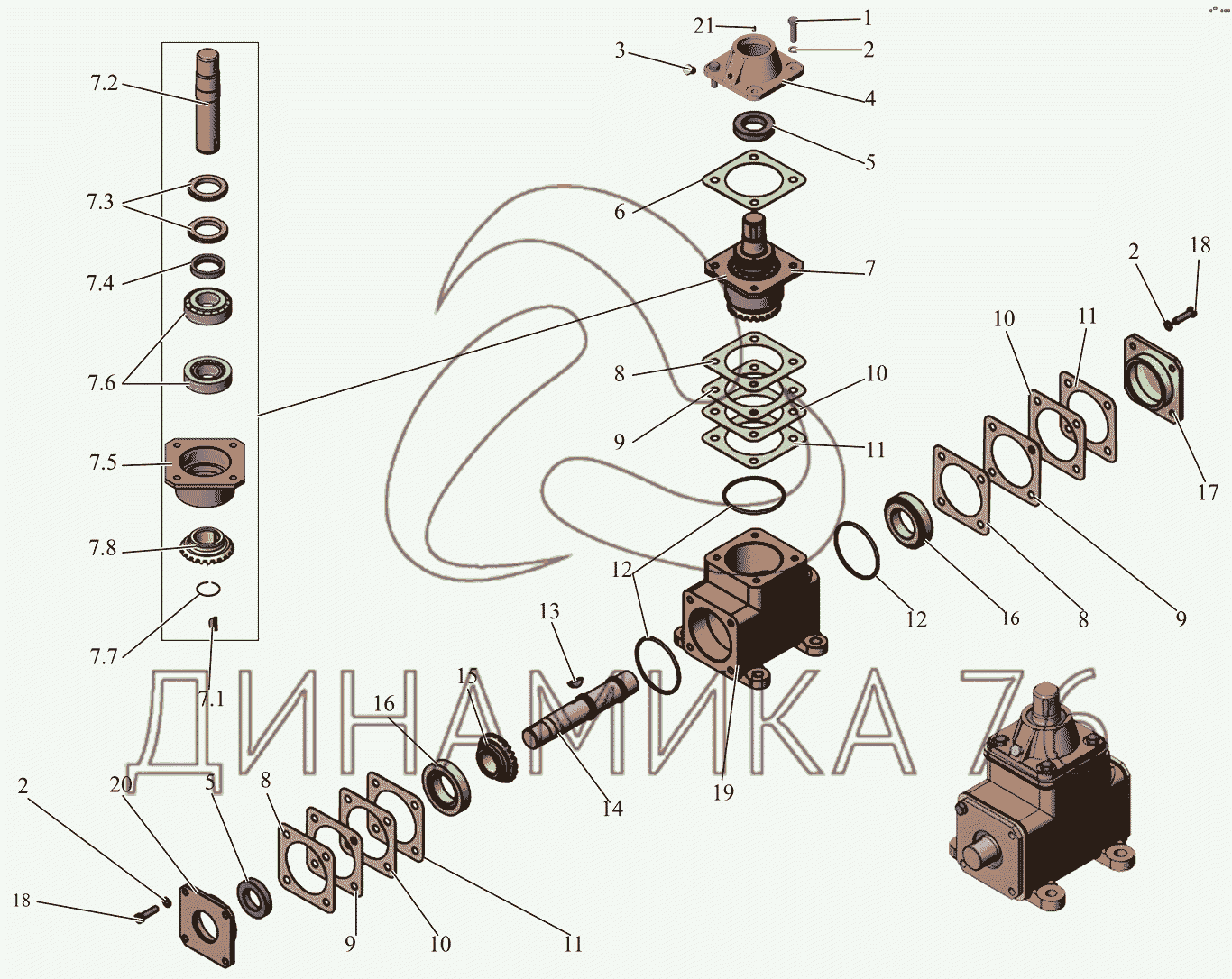 Перечень комплектующих от Редуктор угловой 104-3426010 на МАЗ-215