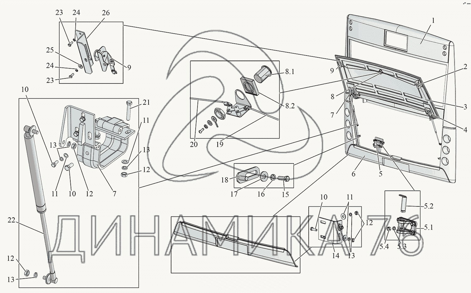 Перечень комплектующих от Установка облицовки задка 205068 на МАЗ-215