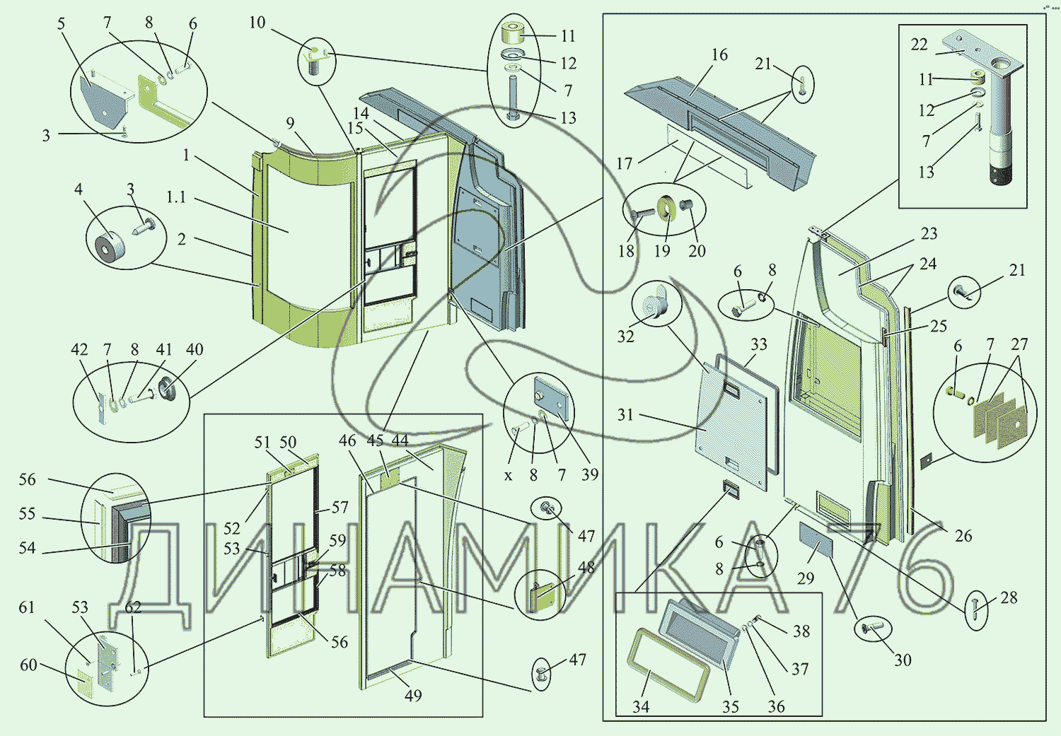 Перечень комплектующих от Установка перегородки 203065-7800010-50 на МАЗ-215