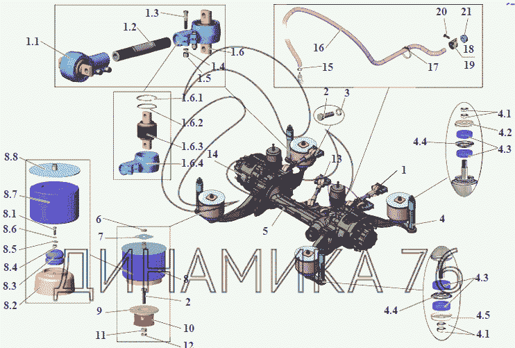 Перечень комплектующих от Установка подвески задней и подвески прицепа на МАЗ-215
