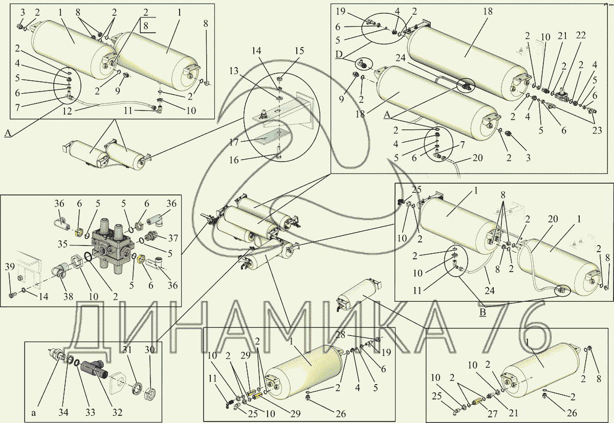 Перечень комплектующих от Блок ресиверов и защитные устройства на МАЗ-231