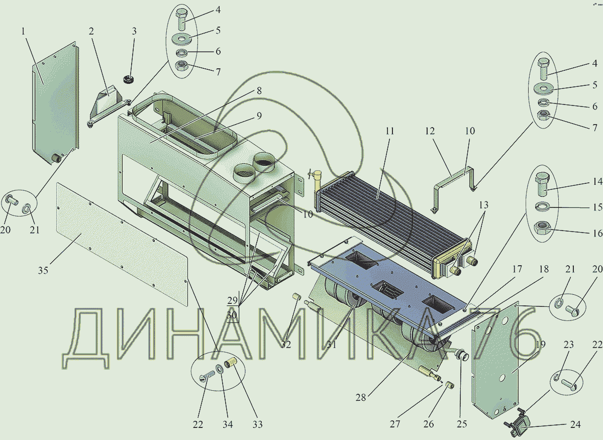 Перечень комплектующих от Фронтальный отопитель 103065-8101002 на МАЗ-231