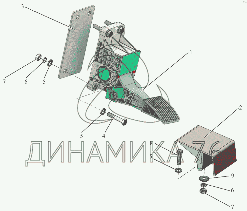 Перечень комплектующих от Педаль управления двигателем на МАЗ-231