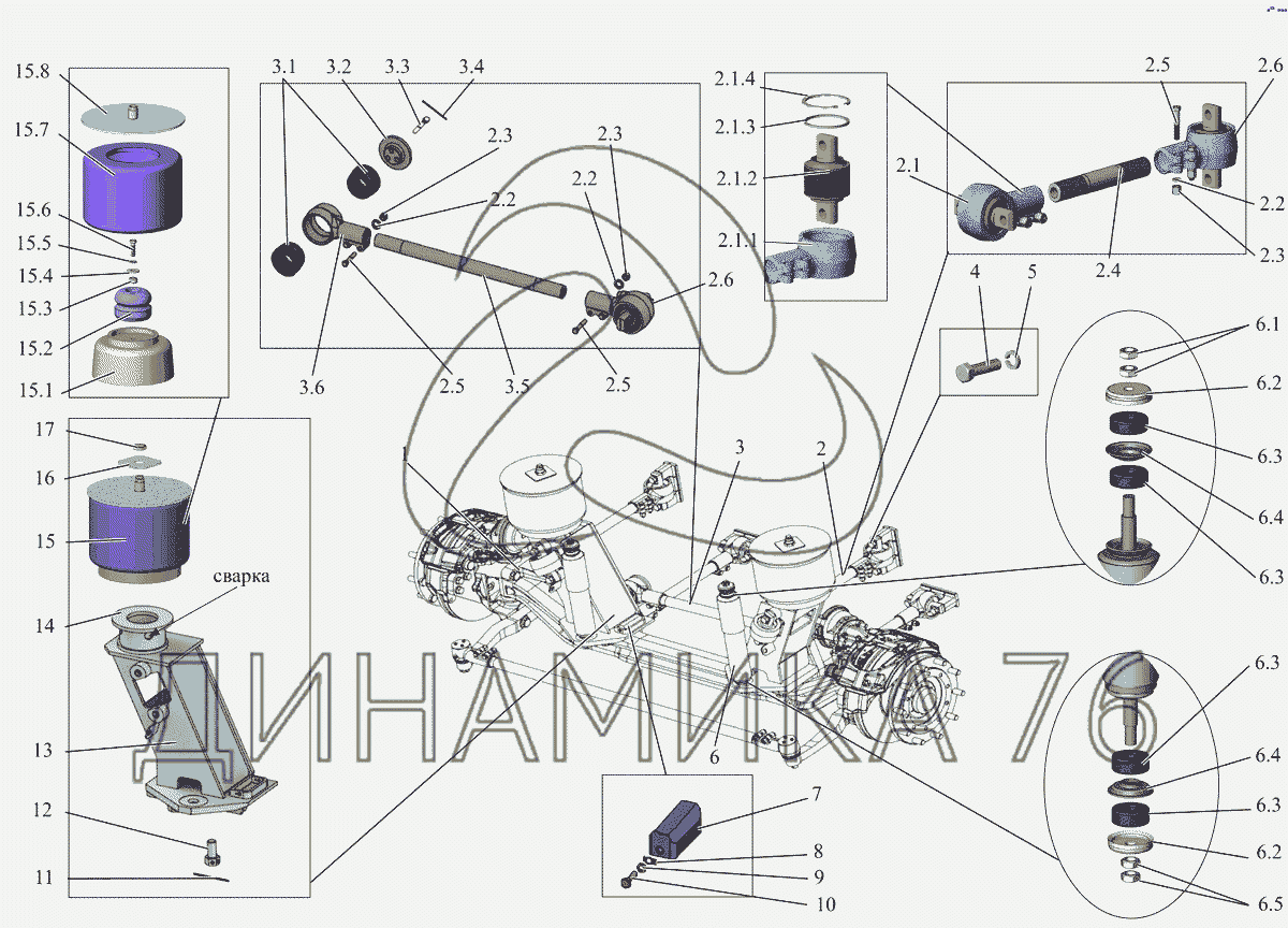 Перечень комплектующих от Подвеска передняя на МАЗ-231