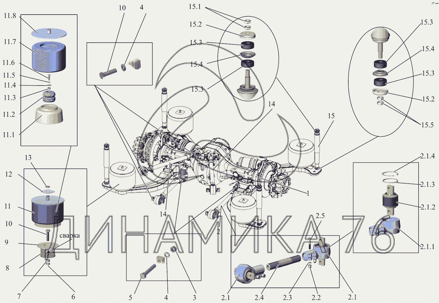 Перечень комплектующих от Подвеска задняя на МАЗ-231