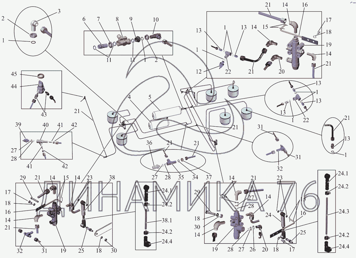 Перечень комплектующих от Трубопроводы пневмоподвески на МАЗ-231