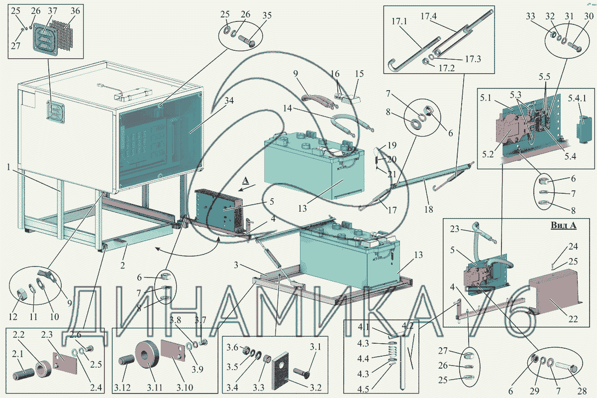 Перечень комплектующих от Установка АКБ на МАЗ-231