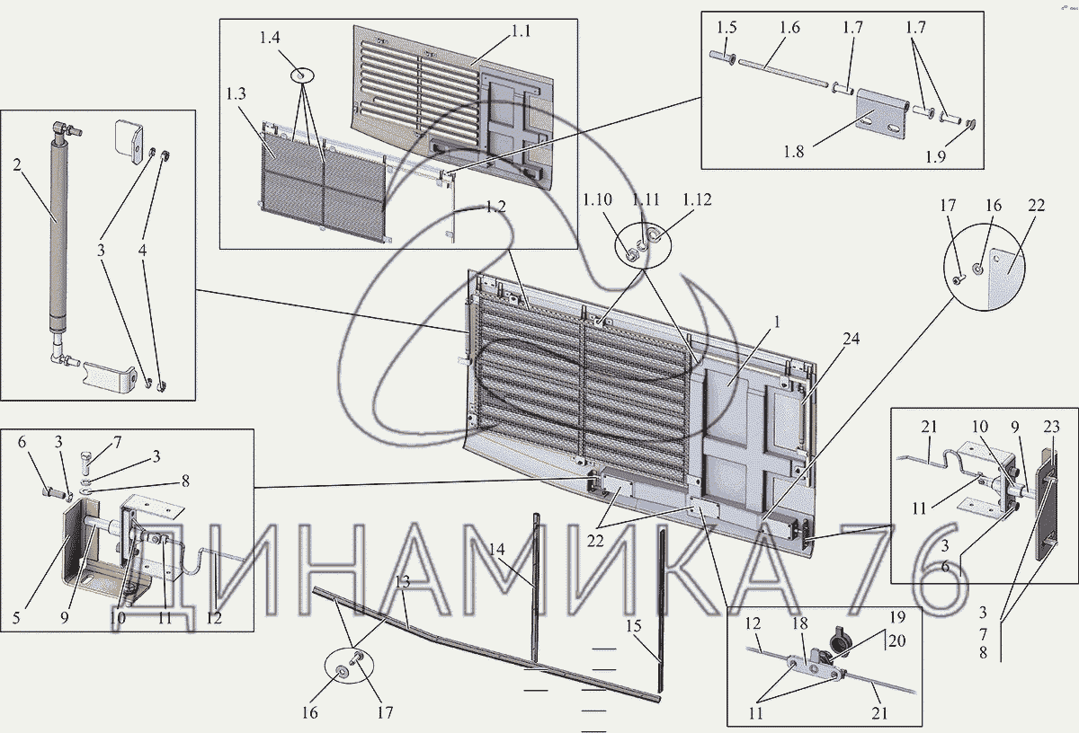 Перечень комплектующих от Установка крышки 231062-5409701-10 на МАЗ-231
