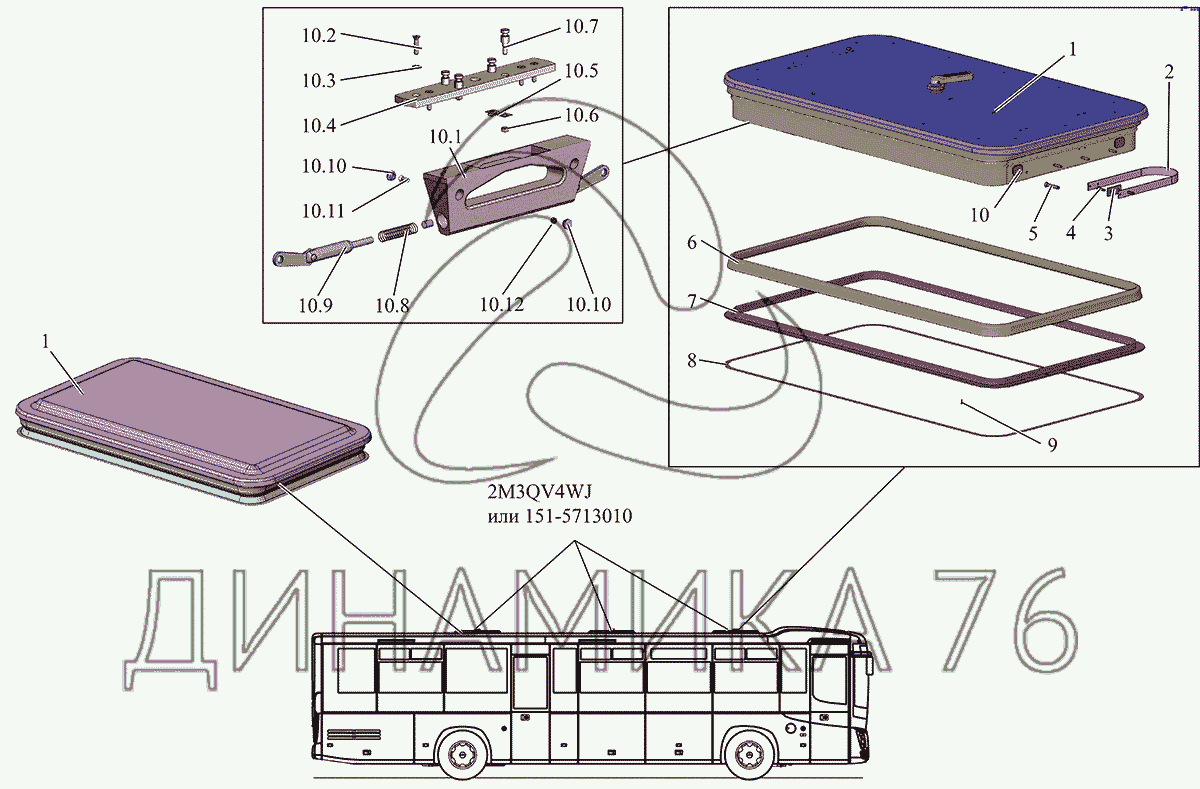 Перечень комплектующих от Установка люков крыши 203062-57130003 на МАЗ-231