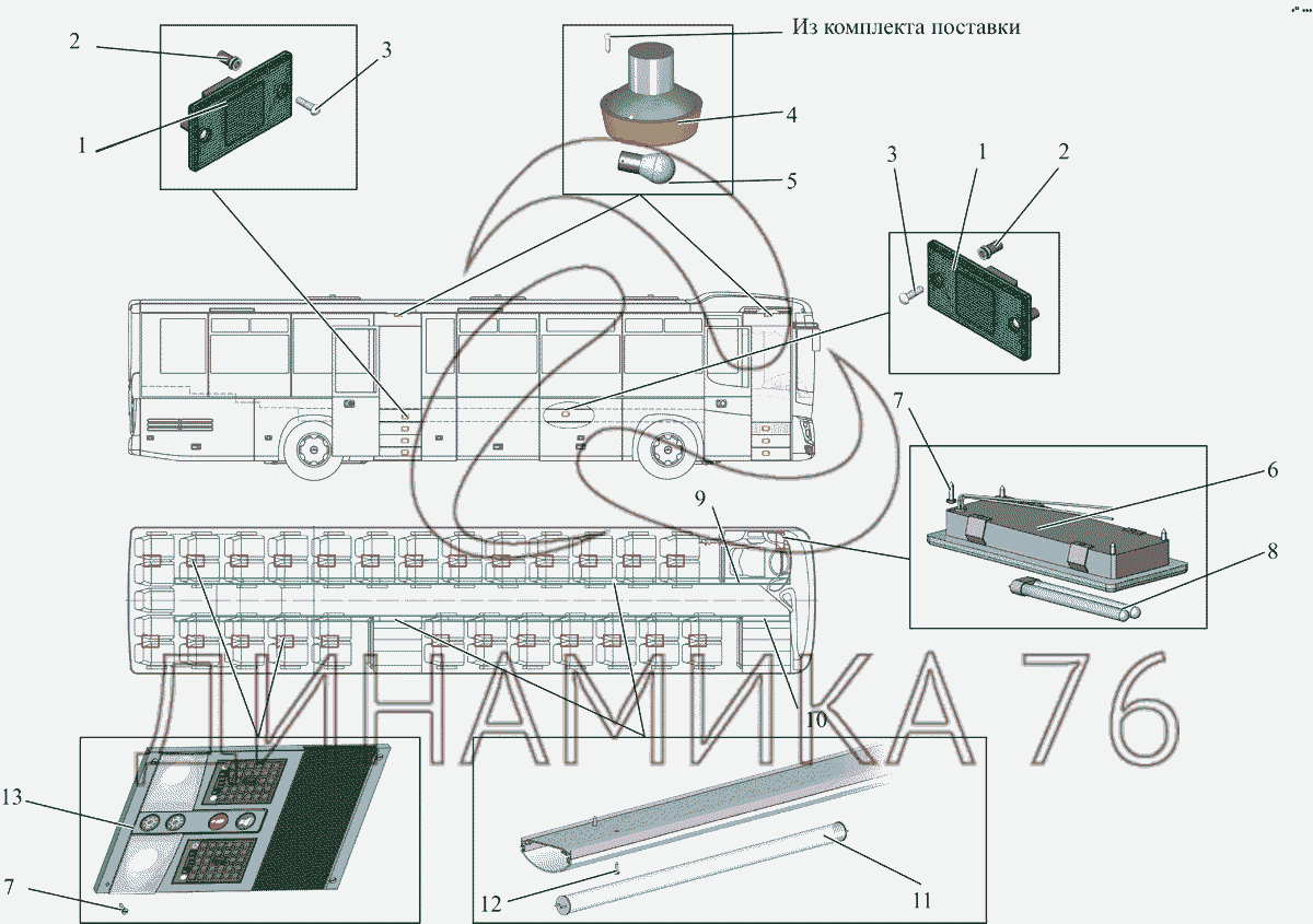 Перечень комплектующих от Установка внутренней светотехники на МАЗ-231