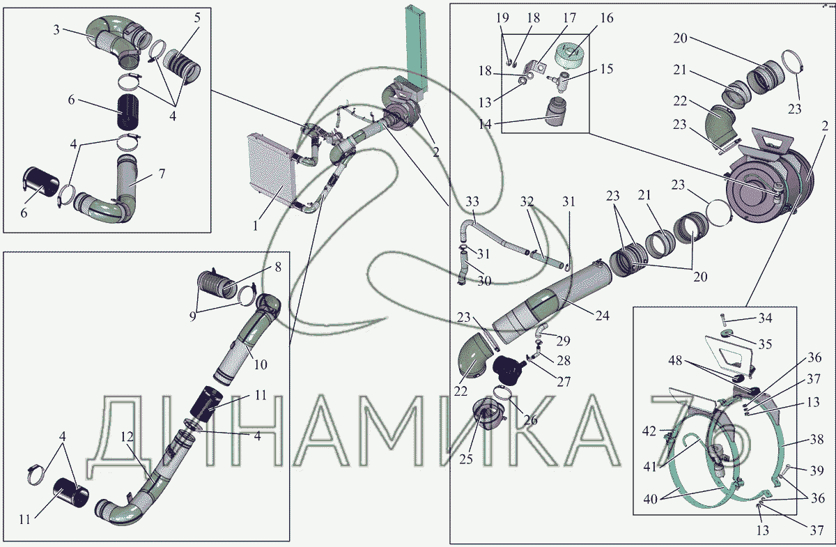 Перечень комплектующих от Установка воздухоочистителя и охладителя наддувочного воздуха на МАЗ-231