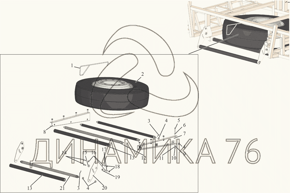 Перечень комплектующих от Установка запасного колеса на МАЗ-231