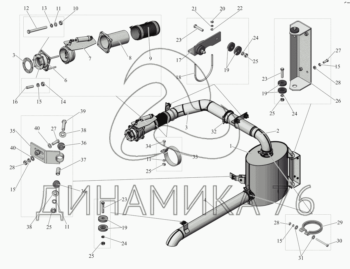 Cистема выпуска отработавших газов 251050-1200001 — МАЗ-251: