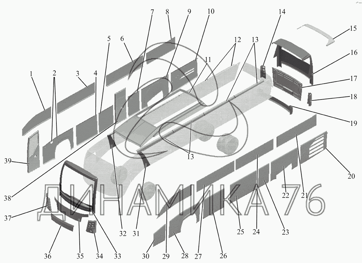 Перечень комплектующих от Наружная облицовка кузова автобуса МАЗ 251 на МАЗ-251