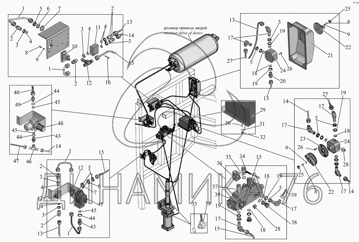 Перечень комплектующих от Пневмоаппаратура задней двери 251050-6100011 на МАЗ-251