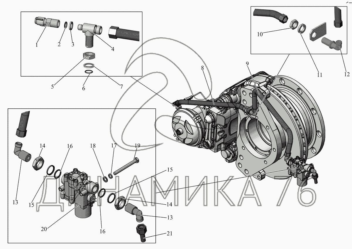 Перечень комплектующих от Привод переднего тормоза 251050-3500100 на МАЗ-251
