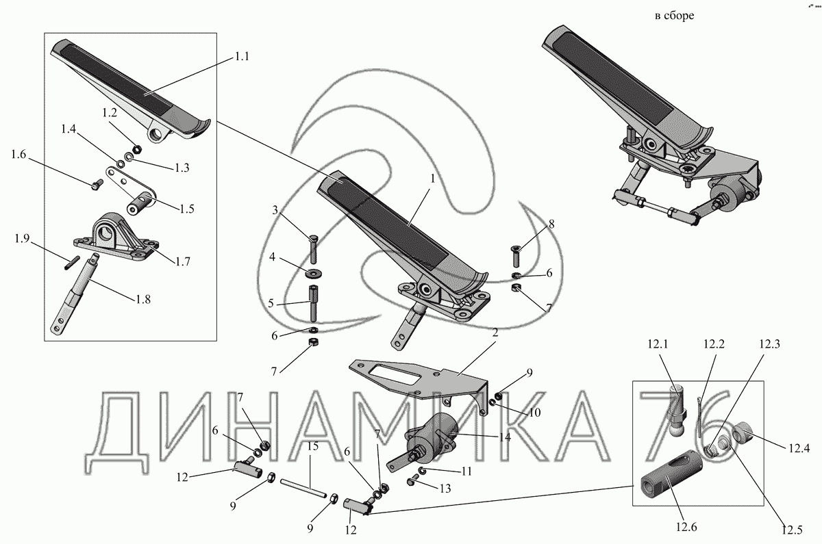 Перечень комплектующих от Привод управления двигателем 251050-1108002 на МАЗ-251