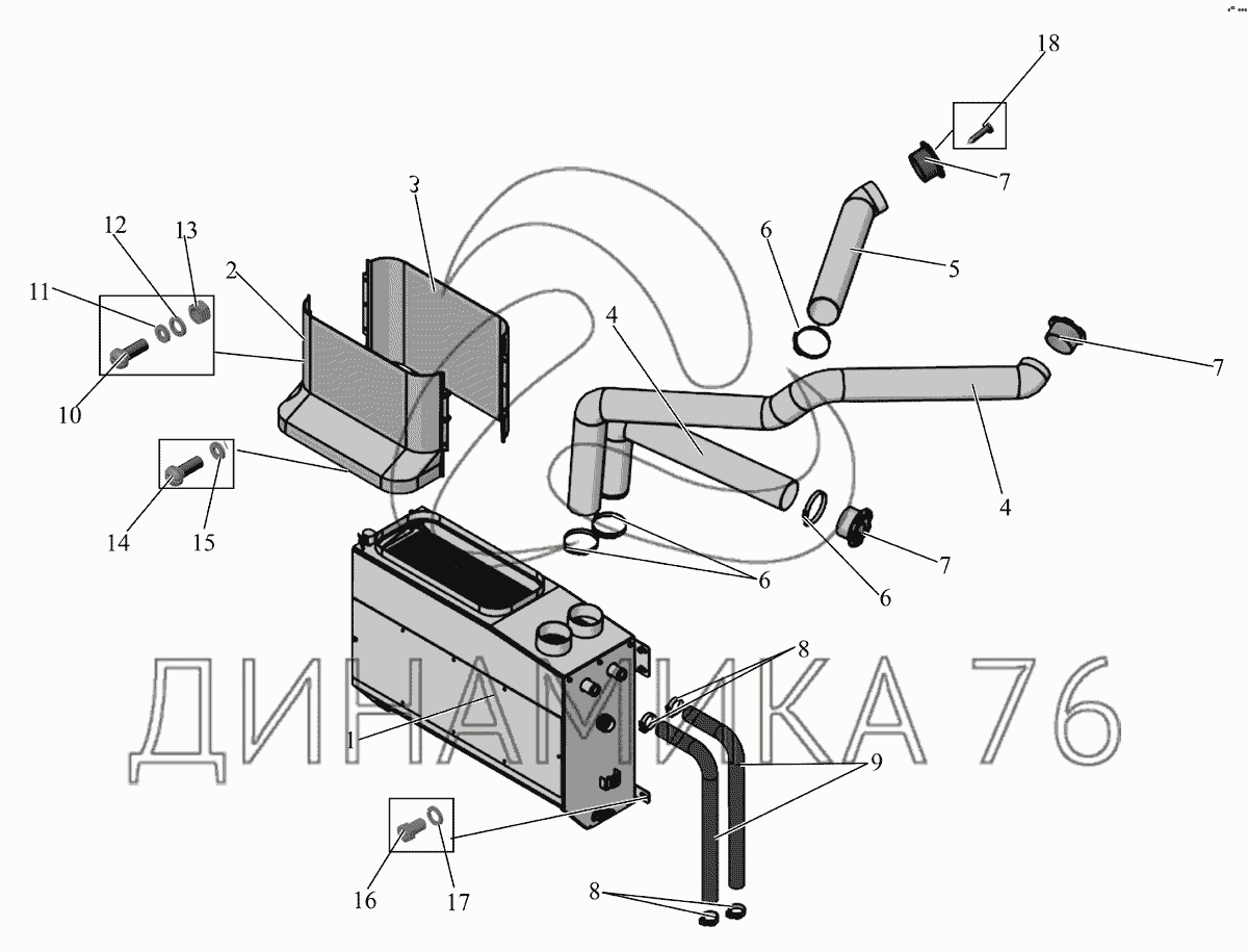 Перечень комплектующих от Установка фронтального отопителя 251050-8100006 на МАЗ-251