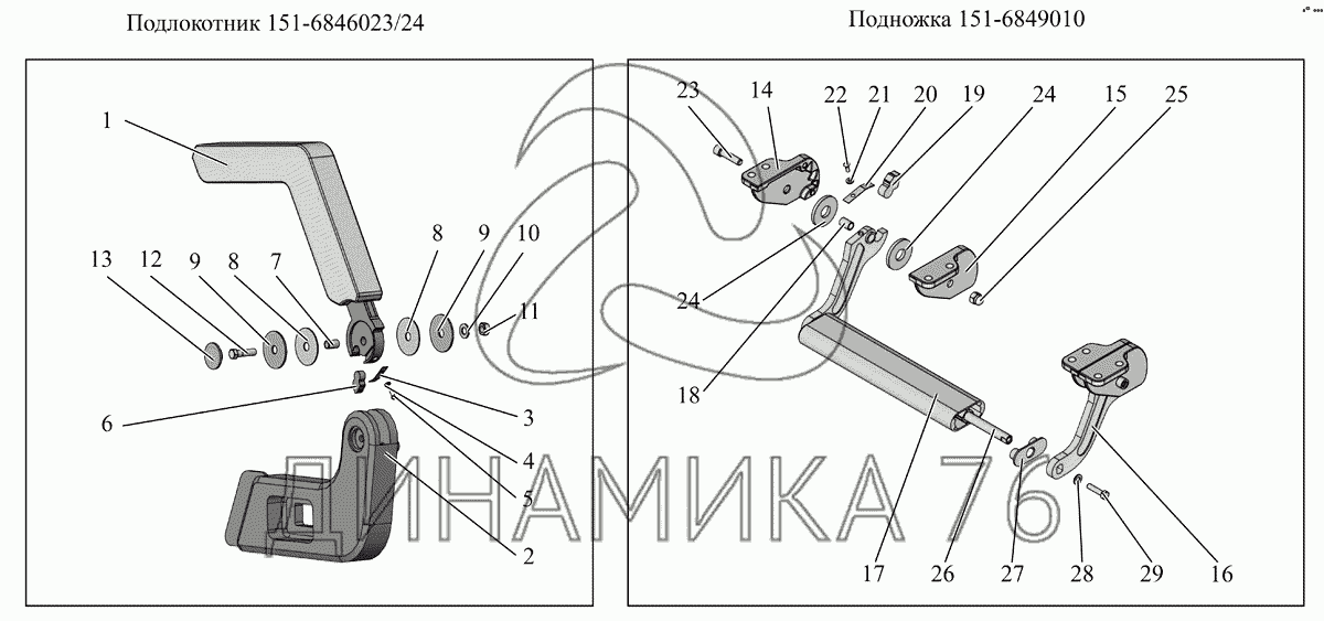 Перечень комплектующих от Установка сидений (подлокотники и подножка) на МАЗ-251