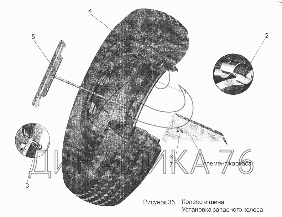Перечень комплектующих от Колесо и шина. Установка запасного колеса на МАЗ-256