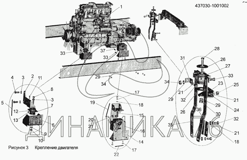 Перечень комплектующих от Крепление двигателя 437030-1001002 на МАЗ-256