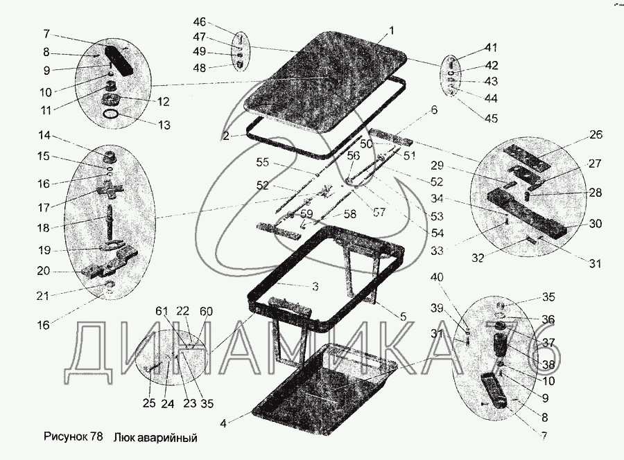 Перечень комплектующих от Люк аварийный 101-5713012 на МАЗ-256