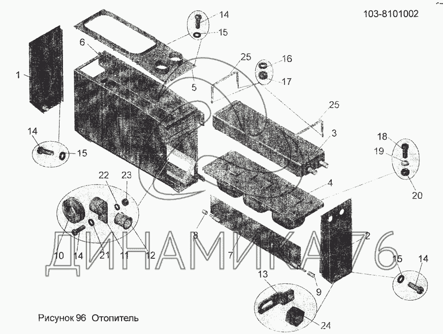 Перечень комплектующих от Отопитель 103-8101002 на МАЗ-256