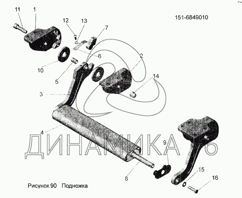 Перечень комплектующих от Подножка 151-6849010 на МАЗ-256