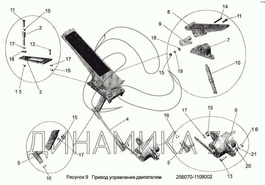 Перечень комплектующих от Привод управления двигателем 256070-1108002 на МАЗ-256