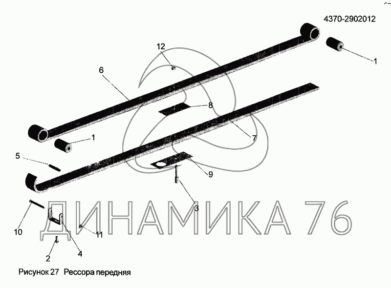 Перечень комплектующих от Рессора передняя 4370-2902012 на МАЗ-256