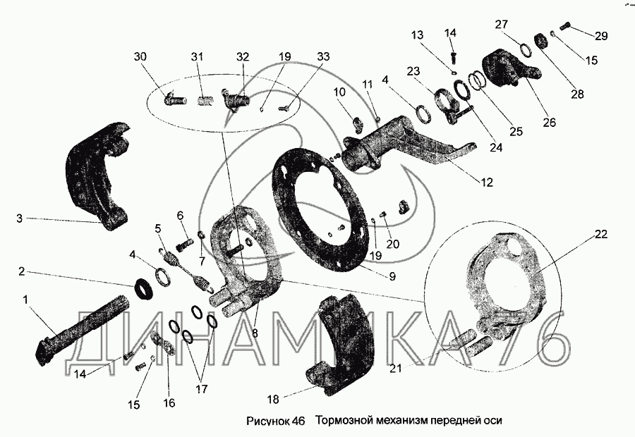 Тормозной механизм передней оси — МАЗ-256: