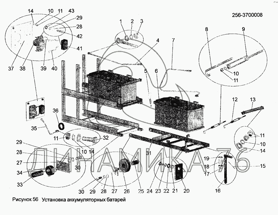Установка аккумуляторных батарей 256-3700008 — МАЗ-256: