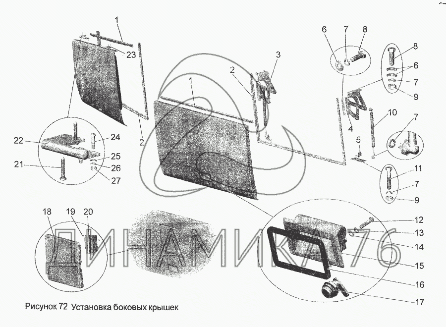 Перечень комплектующих от Установка боковых крышек на МАЗ-256