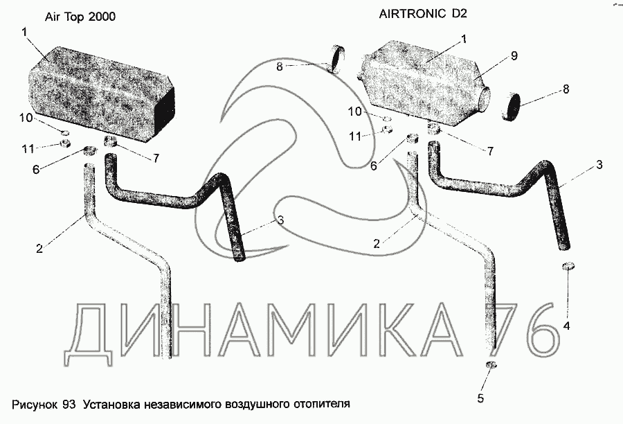 Перечень комплектующих от Установка независимого воздушного отопителя на МАЗ-256