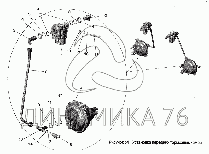 Перечень комплектующих от Установка передних тормозных камер на МАЗ-256