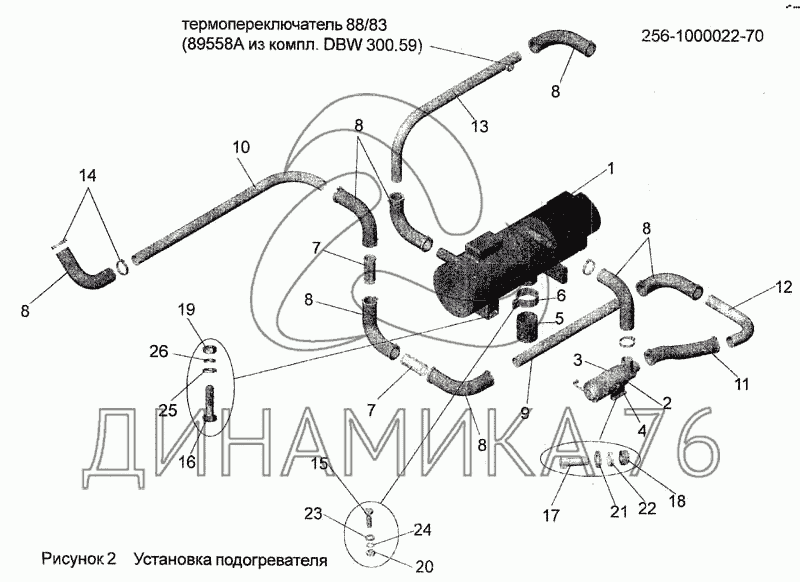 Перечень комплектующих от Установка подогревателя 256-1000022-70 на МАЗ-256