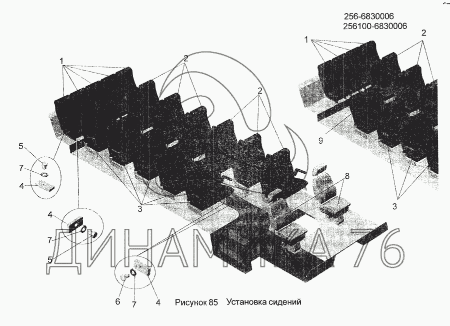 Схемы запчастей предназначены для справочных целей! Мы продаем не все запчасти от Установка сидений 256-6830006 на МАЗ-256, представленные в этом списке.