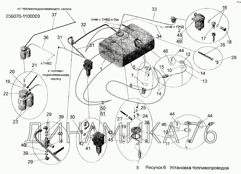 Перечень комплектующих от Установка топливопроводов 256070-1100003 на МАЗ-256
